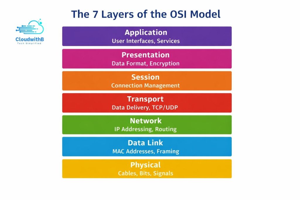 The OSI Model (Open Systems Interconnection Model) is a conceptual framework that helps us understand how data moves from one computer to another over a network. By breaking network communication into seven distinct layers, the OSI Model provides a roadmap for IT beginners to understand networking concepts, troubleshoot issues, and even prepare for advanced topics like cloud computing and cybersecurity.