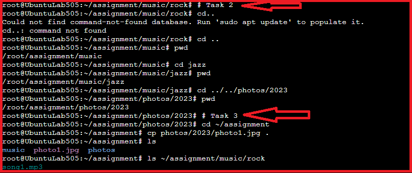 cd ~/assignment/music/rock → navigates directly to the rock folder